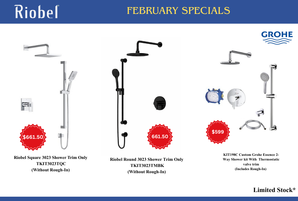 Top Brand Names Like Riobel, Grohe, Toto, Virta, Maax and Moen at the best price.