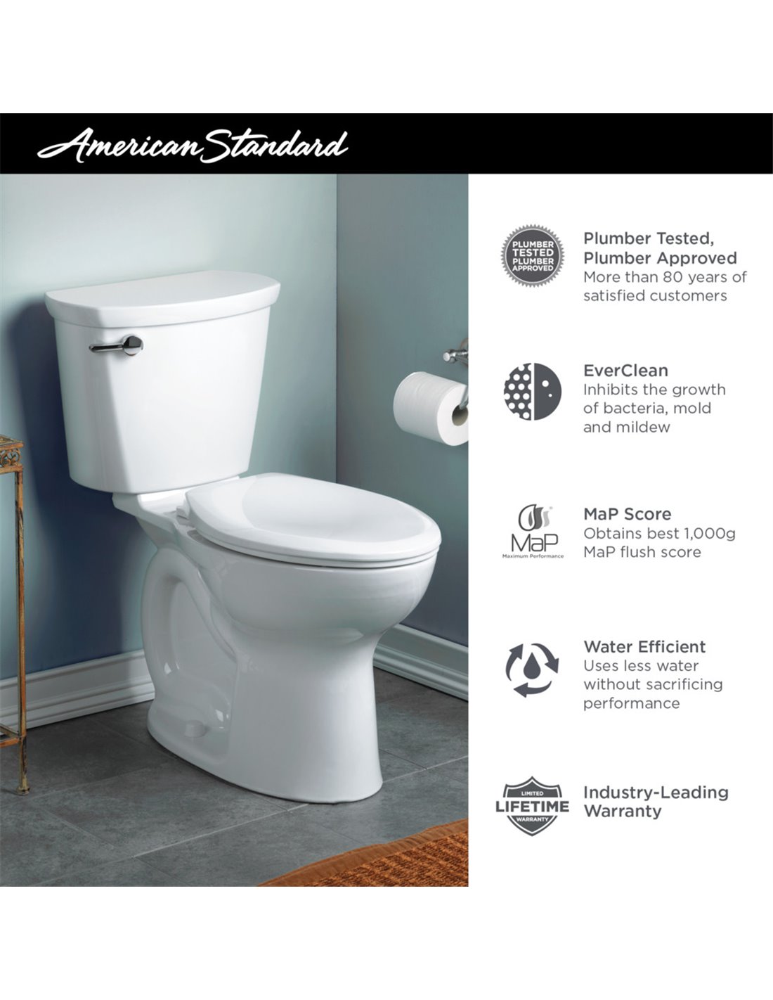 American Standard Cadet Pro Two-Piece 1.6 gpf/6.0 Lpf Compact Chair Height Elongated 14-Inch Rough Toilet Less Seat