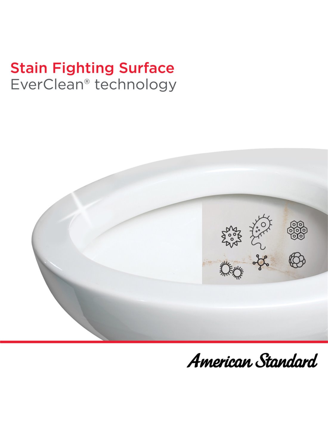 The Cadet PRO Compact Elongated toilet from American Standard gives you the comfort of an elongated toilet, with the space-saving design of a round front. This Chair Height model sits at a chair-like height of 16-1/2inches for a tall toilet that provides added comfort, as well as easier use for individuals with issues such as limited mobility, joint problems, or back problems. The Cadet PRO also features the Cadet Flushing System for an outstanding flush performance that prevents clogs. The EverClean® surface inhibits the growth of stain and odor-causing bacteria, mold, and mildew on the surface.