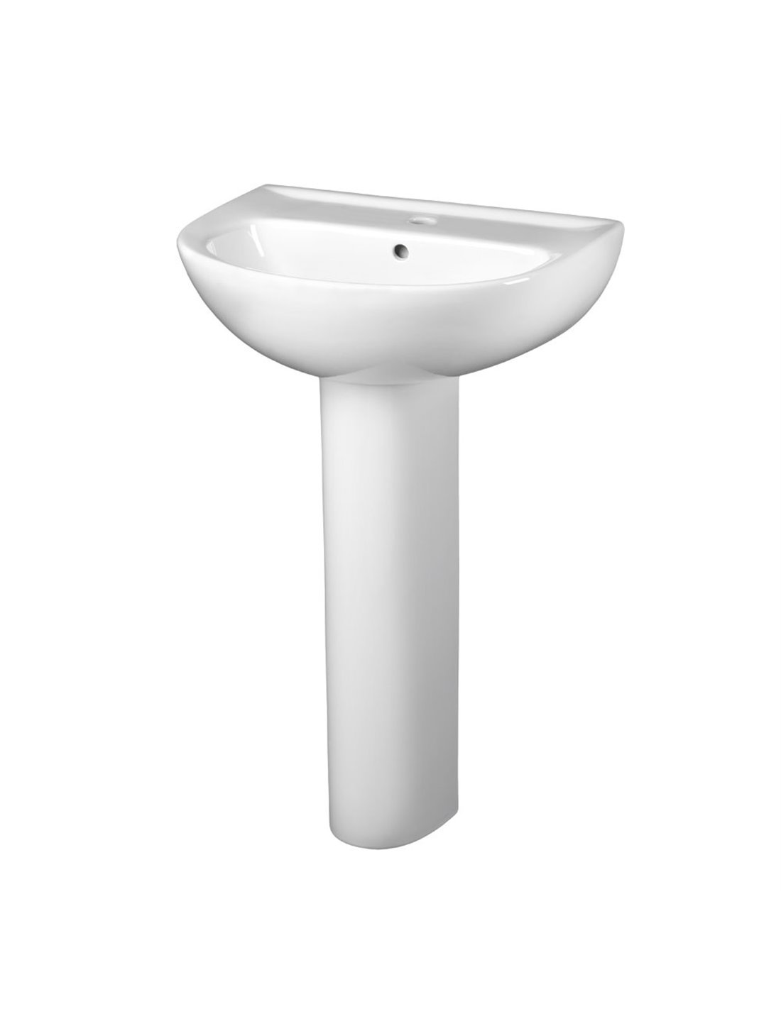 Adapt to greater heights of style. This pedestal sink from our growing Evolution® Collection goes well with casual bathroom décor. Features a faucet ledge with a large shelf area. The sink and pedestal are both made from high-gloss, stain-resistant Vitreous China. Available with a single hole or 4" or 8" center faucet holes.