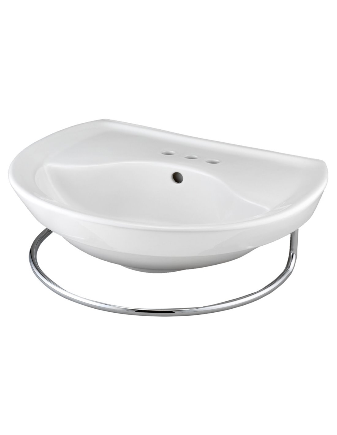 A ravishing choice for remodeling. The contemporary, European styling of this sleek pedestal sink makes it ideal for use in a modern bathroom. Shown with an optional towel bar available in a Chrome or Satin finish. Made from high-gloss, stain-resistant Vitreous China. Available with a single hole or 4" or 8" center faucet holes.