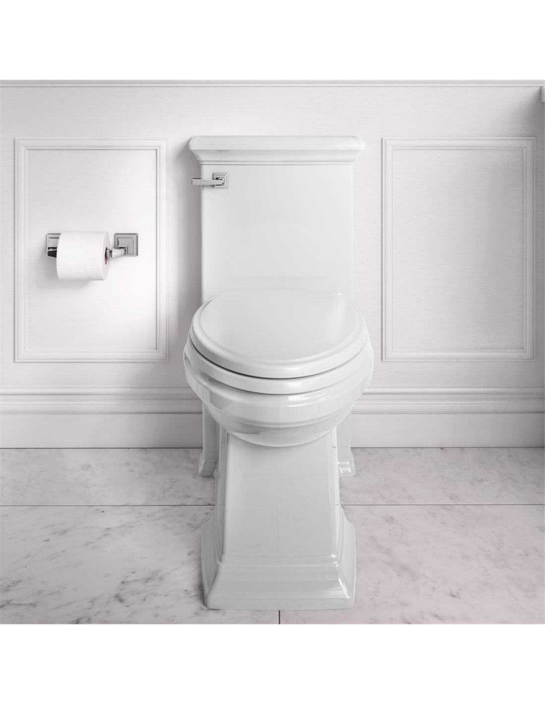 - Includes slow-close seat and chrome finish trip lever
