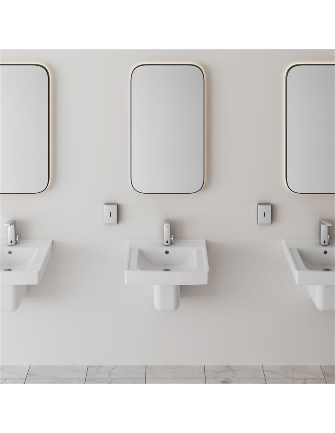 The Decorum Wall-Hung Bathroom Sink from American Standard is a sleek, spacious option for the busiest bathrooms. This contemporary design is made of high-gloss vitreous china featuring EverClean to inhibit the growth of stain and odor-causing bacteria, mold and mildew on the surface. The Decorum Sink from American Standard stands up to the rigors of steady use and high traffic, promising easy-clean convenience, ADA accessibility, and the option to use with or without shroud (sold separately).