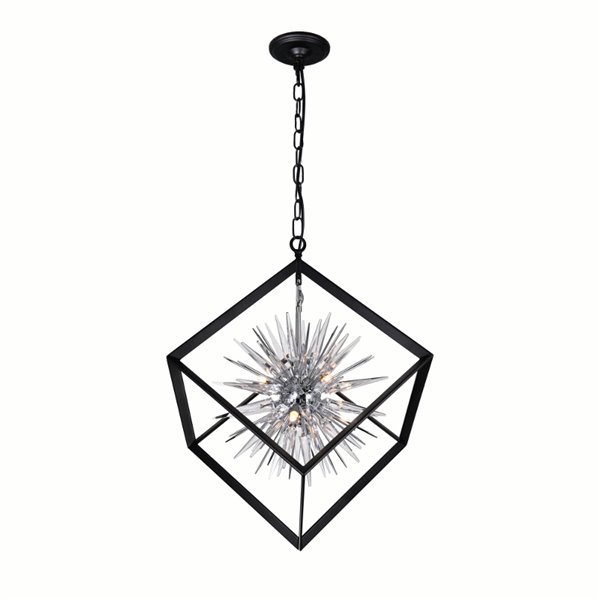 A lighting fixture so striking it's a work of art in itself. Seamlessly combining form and function, this stylish chandelier illuminates your space not just with ample light but also with great panache. The Starburst 6 Light Down Chandelier comes in chrome and black finish and displays a bold look with its interesting shape and style. Bring an architectural, modernist feel to your space with this eye-catching chandelier.Lighting is jewelry for the home, and there is the perfect piece for every room. This fixture is done in a beautiful chrome & black finish which could be the missing piece to lighten up and fall in love with your space all over again.
