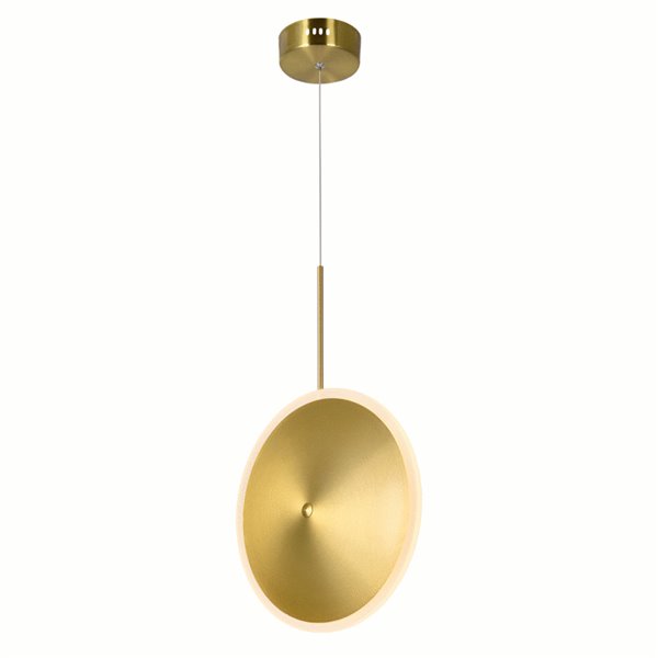 A 12 inch light disc hanging vertically from a round brass canopy defines the profile of this Ovni 12 inch LED Mini Pendant. An instant eye-catcher, this flat ring pendant light with an integrated LED frame will bring a stylish element to a room. Although minimalist in design, you'd be impressed by the attention this statement-making light fixture will get from your guests.Lighting is jewelry for the home, and there is the perfect piece for every room. This fixture is done in a beautiful brass finish which could be the missing piece to lighten up and fall in love with your space all over again.