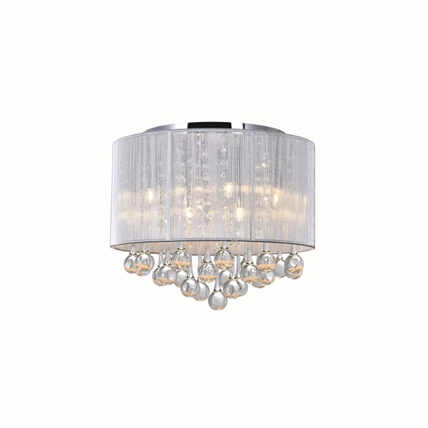 Think your space needs that something extra that will bring imagination to life? Get the Water Drop 6 Light Flush Mount and see how this light fixture can make a huge difference in your interiors. Available in three shade colors, this close-to-ceiling lighting option is designed with classic elegance and modern beauty. Six bulbs are concealed inside a 14 inch circular shade that glistens with hanging crystal drops. Add this light fixture to your home and effortlessly give your humble abode a stunning and extraordinary update.Lighting is jewelry for the home, and there is the perfect piece for every room. This fixture is done in a beautiful chrome finish which could be the missing piece to lighten up and fall in love with your space all over again.