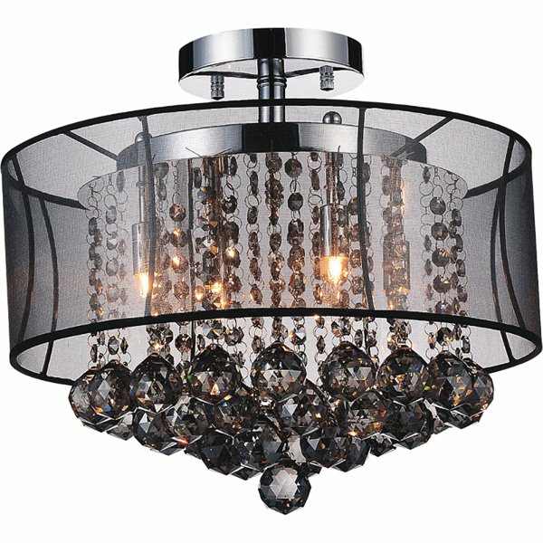 A petite chandelier mounted close to the ceiling so it takes up much less space. This 16" Radiant 6 Light Flush Mount Chandelier is a small-scale light fixture that can bring style to a compact space. The crystal beading is a great way to add some glitz into a small room while keeping the decor itself functional. You simply can't go wrong with the petite size of this chic light source. This fixture is offered in three different crystal color and shade combinations.Lighting is jewelry for the home, and there is the perfect piece for every room. This fixture is done in a beautiful chrome finish which could be the missing piece to lighten up and fall in love with your space all over again.