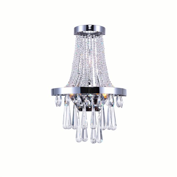 Don't let the compact size of this crystal wall light fool you. It provides high sparkle and reflects an abundance of light.Use this to reinvent the look of a small powder room and watch it bounce elegant light around a compact space. Requiring just three candelabra bulbs, this is a decorative and functional fixture you won't regret adding into your interiors.Lighting is jewelry for the home, and there is the perfect piece for every room. This fixture is done in a beautiful chrome finish which could be the missing piece to lighten up and fall in love with your space all over again.