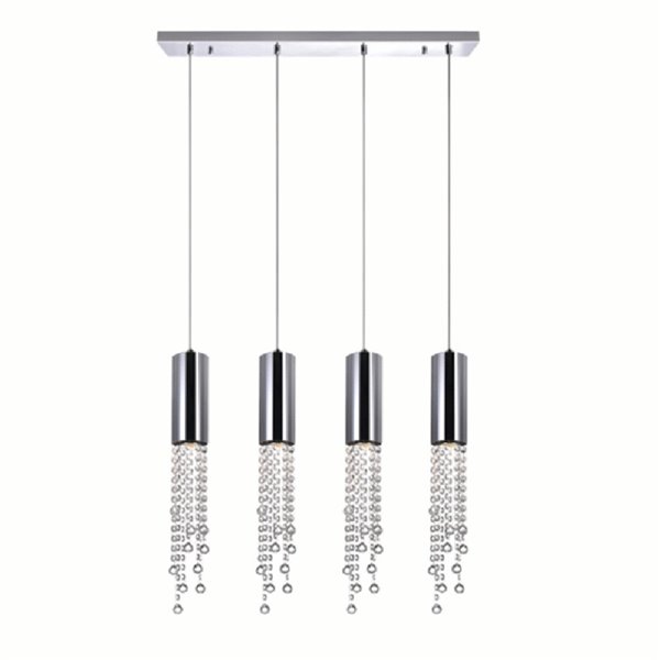 The bejeweled luminaire perfect for date nights at home. The Extended 4 Light Chandelier is a multi Light pendant perfect in your dining room or kitchen island. This light source is designed with four chrome-finished tubes suspended from a rectangular canopy in polished chrome. Each tube has some dangling clear crystal beads that shed a beautiful twinkling light. Now all you need to do is get dressed, put on some romantic music, and enjoy wine and dinner with your partner.Lighting is jewelry for the home, and there is the perfect piece for every room. This fixture is done in a beautiful chrome finish which could be the missing piece to lighten up and fall in love with your space all over again.