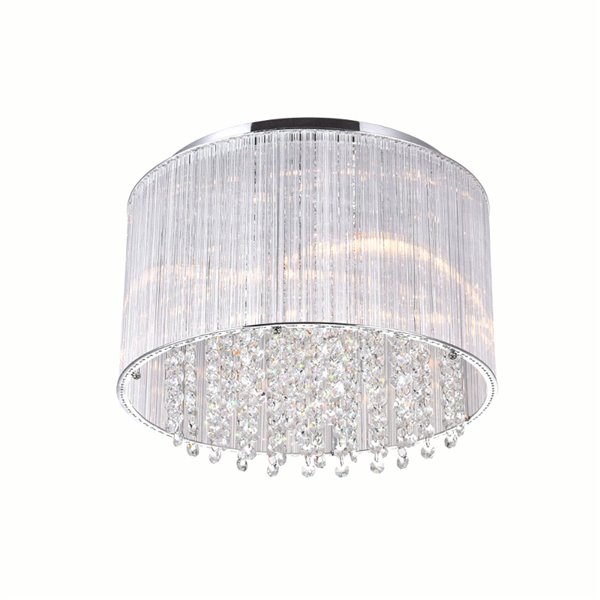 Defined by shimmering elegance, the Spring Morning 6 Light Flush Mount light fixture can help make your interiors look a little more "well-dressed." This chrome-finished luminaire features a circular glass shade with silver rims. Dripping from the inside are crystal bead strands that cast a chic and sparkling luster.Lighting is jewelry for the home, and there is the perfect piece for every room. This fixture is done in a beautiful chrome finish which could be the missing piece to lighten up and fall in love with your space all over again.