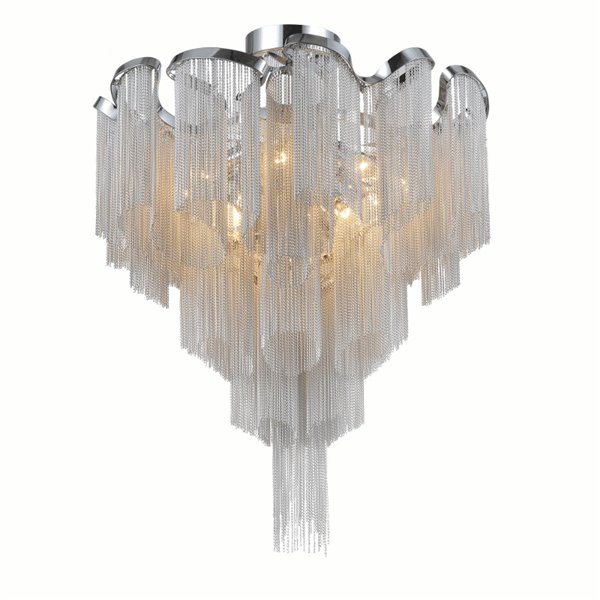Fabulous and captivating, the Daisy 13 Light Flush Mount exudes a charming character that can bring life into your home interiors. This chrome-finished light source with curtains of silver-toned strands is a bold piece of lighting that can set an elegant tone for the rest of your space. Mount it on the entryway foyer for a dramatic welcome for your guests.Lighting is jewelry for the home, and there is the perfect piece for every room. This fixture is done in a beautiful chrome finish which could be the missing piece to lighten up and fall in love with your space all over again.