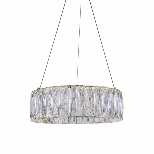 Bringing vibrant sparkle to your space is the Juno 5" LED Chandelier. This streamlined light fixture showcases a single halo of light, measuring 5 inches thick, covered in faceted clear crystals. The glittering ring is powered by energy-efficient LEDs that deliver brilliant illumination. Finished with chrome hardware, this modern lighting option will fill any space with an elegant air.Lighting is jewelry for the home, and there is the perfect piece for every room. This fixture is done in a beautiful chrome finish which could be the missing piece to lighten up and fall in love with your space all over again.