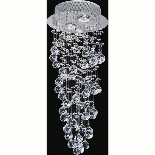 Delivering high sparkle minus the large footprint, the Double Spiral 2 Light Flush Mount is the perfect choice to update your limited space with a touch of luxury. This light source features a 10 inch round canopy in chrome with two hanging spiral stands of crystal beads. A barely-there curtain of smaller crystals finishes the look with subtle style. Whether turned on or off, this glittering light fixture will provide your space the style boost it needs.Lighting is jewelry for the home, and there is the perfect piece for every room. This fixture is done in a beautiful chrome finish which could be the missing piece to lighten up and fall in love with your space all over again.