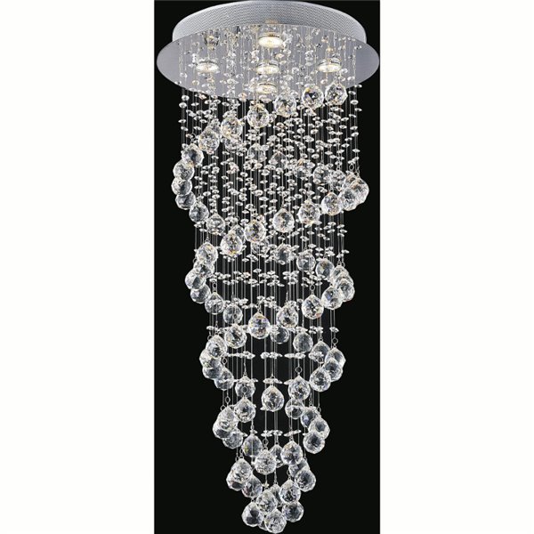 A long and slim crystal chandelier for compact spaces in need of a touch of glamour. The Double Spiral 5 Light Flush Mount can make a big impact in the ambiance of your home. This light source features two spiral silhouettes of crystal beads covered by a barely-there curtain of crystal strands. The streamlined look of this decorative crystal light source makes it perfect for not-so-big rooms in need of sparkling illumination.Lighting is jewelry for the home, and there is the perfect piece for every room. This fixture is done in a beautiful chrome finish which could be the missing piece to lighten up and fall in love with your space all over again.