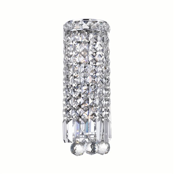 Love that high-end custom bathroom style? Achieve it effortlessly simply by adding a pair of the Colosseum 2 Light Wall Sconce. This wall-mounted bathroom lighting option measures 12 inches tall and 5 inches wide and is covered in faceted clear crystals. Place one on either side of a mirror and get a flattering glow each time you gaze at yourself.Lighting is jewelry for the home, and there is the perfect piece for every room. This fixture is done in a beautiful chrome finish which could be the missing piece to lighten up and fall in love with your space all over again.