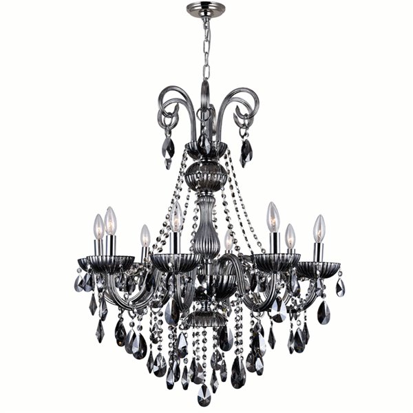 A light source, a decor, and a conversation starter. The Casper 8 Light Chandelier will make a great focal point in your living room or dining area. Its transitional profile, candelabra arms and bulbs, and strings of smoke-colored crystals will attract attention and give any flat space an instant style update.Lighting is jewelry for the home, and there is the perfect piece for every room. This fixture is done in a beautiful chrome finish which could be the missing piece to lighten up and fall in love with your space all over again.