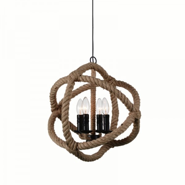 Create a more welcoming dining environment by replacing your light fixture with a pair of the Padma 4 Light Chandelier. This rustic light fixture is designed with a geometric pendant with hemp rope frame. A black candelabra base sits at the center holding four candelabra bulbs. This 15 inch pendant light displays a rugged, natural beauty perfect for bringing any space that cozy, earthy, and organic feel. 'Lighting is jewelry for the home, and there is the perfect piece for every room. This fixture is done in a beautiful black finish which could be the missing piece to lighten up and fall in love with your space all over again.