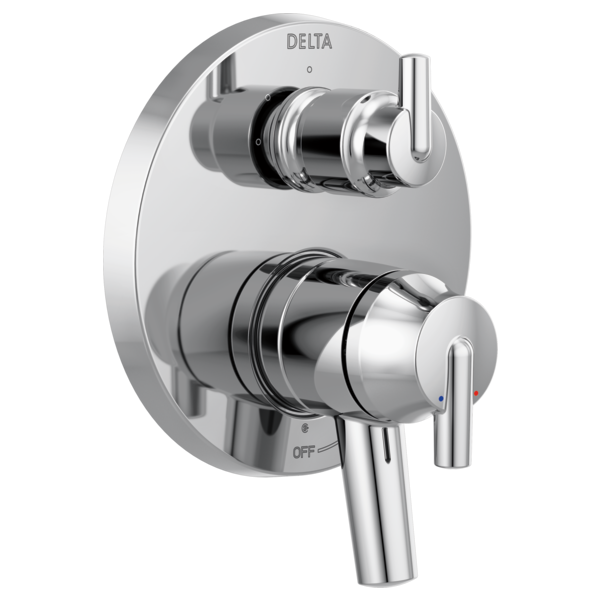 The Delta® MultiChoice® Integrated Shower Diverter consolidates custom shower design with its consumer-preferred streamlined style eliminating the need for an additional diverter valve. The contemporary round style is a smooth take on modern geometrics, offering a fresh look which can complement a wide range of decor. With three popular style choices to coordinate with any bathroom décor, it provides you the flexibility to select the type of custom shower functionality you prefer. With the MultiChoice® Universal system, you have the freedom to upgrade style and functionality later. And, because there’s no need to alter plumbing behind the wall, you save time, effort and money on future renovation updates.