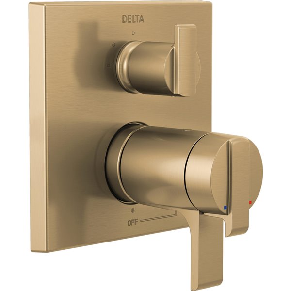 The Delta® MultiChoice® Integrated Shower Diverter consolidates custom shower design with its consumer-preferred streamlined style eliminating the need for an additional diverter valve. The angular modern style is boldly contemporary, featuring crisp lines for an upscale feel. With three popular style choices to coordinate with any bathroom décor, it provides you the flexibility to select the type of custom shower functionality you prefer. With the MultiChoice® Universal system, you have the freedom to upgrade style and functionality later. And, because there’s no need to alter plumbing behind the wall, you save time, effort and money on future renovation updates. Delta's dual-function thermostatic valve cartridge keeps water temperature consistent (within 3.6°) by actually measuring and monitoring the temperature of the water. Temperature can be set in order to remain consistent shower after shower.