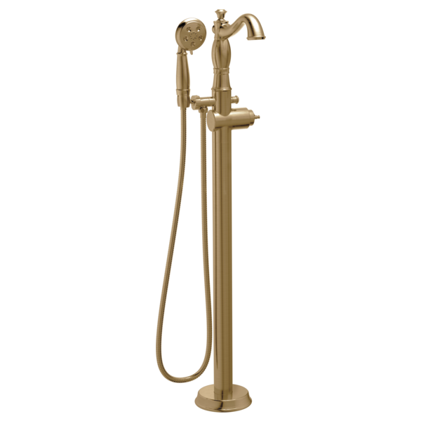 Complete your bath with a beautifully designed Delta roman tub faucet, meticulously crafted to turn heads and enhance your experience. The included hand shower makes this a versatile addition to your bath, perfect for rinsing off, washing loved ones and pets or keeping your tub clean. Delta® H2Okinetic® Hand Showers look different because they are different. Using advanced technology, H2Okinetic Hand Showers sculpt water into a unique wave pattern, giving you 3X the coverage of a standard shower head.* The end result is a hand shower that provides more coverage, more warmth and more intensity for a truly drenching experience. Designed to look like new for life, Brilliance® finishes are developed using a proprietary process that creates a durable, long-lasting finish that is guaranteed not to corrode, tarnish or discolor. Take the chill out of contemporary with the eloquent warmth of Champagne Bronze™ in your bath. This vibrant, gold finish provides a vivid splash of contrast to your space for a look that's simultaneously modern and nimble, able to pair elegantly with traditional, transitional and contemporary décor. Brilliance finishes are durable, long-lasting and guaranteed not to corrode, tarnish or discolor, so you can enjoy a coordinated bath you'll love to look at for life. You can install with confidence, knowing that Delta faucets are backed by our Lifetime Limited Warranty. *Coverage measured in accordance with EPA WaterSense® Specification for shower heads, March 4, 2010.