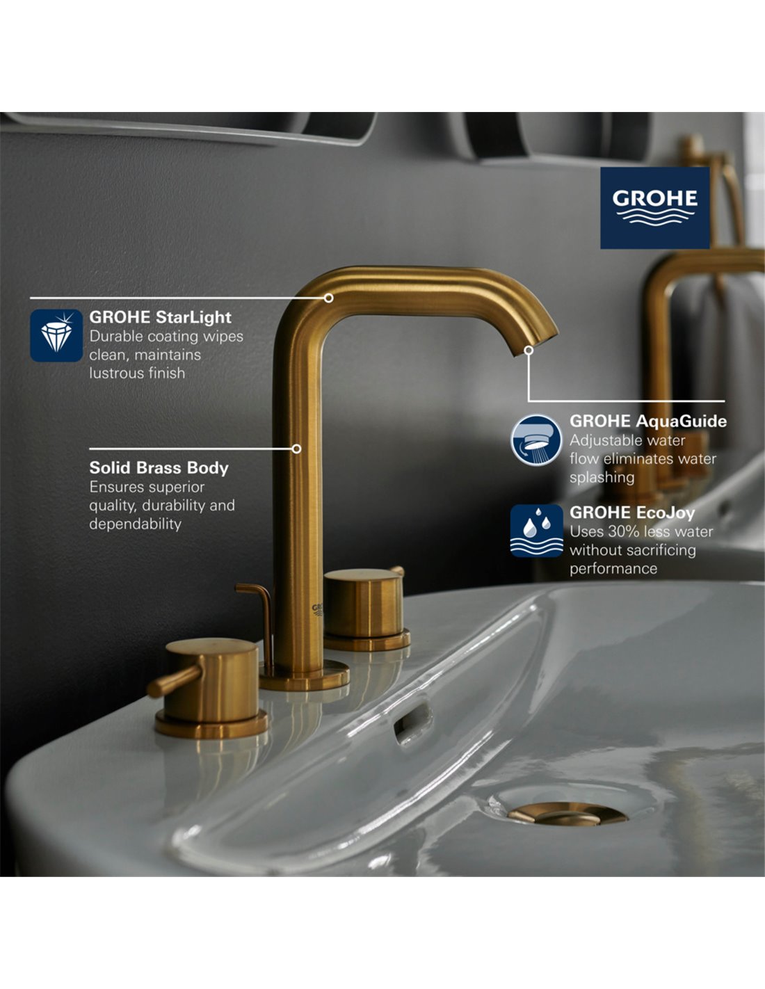- DURABLE FINISHES: GROHE StarLight coating maintains luster on brushed and polished finishes