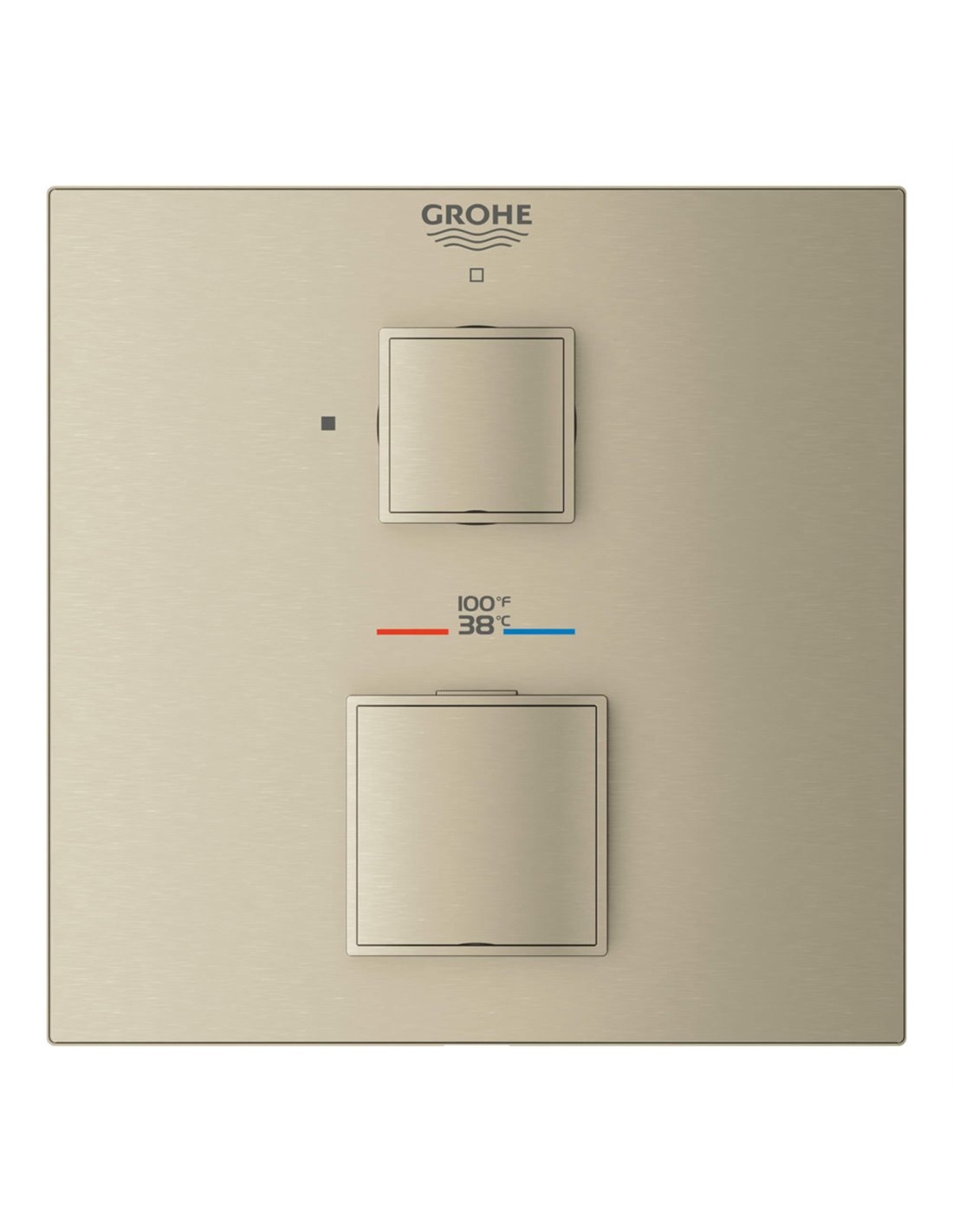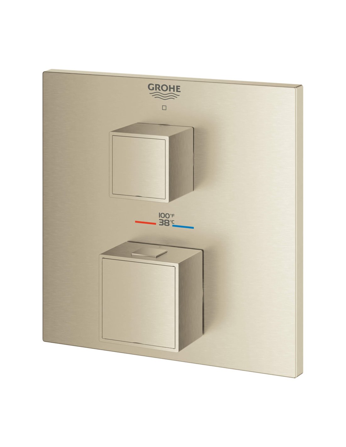 From its artful cube profile to its intuitive operation, the GROHE Grohtherm Cube Single Function 2-Handle Thermostatic Trim with Control Module lends clean, geometric lines to a contemporary bathroom. Thoughtfully designed for comfort and enjoyment, Grohtherm features an upper handle to control volume and on/off, a lower handle to control temperature, GROHE Turbostat to maintain consistent temperature, and GROHE SafeStop to prevent scalding. It’s the perfect combination of style and substance in today’s home.