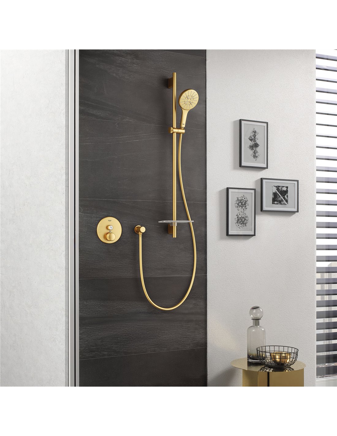 Defined by its sleek profile and designed to soothe and satisfy, the GROHE Rainshower SmartActive Hand Shower features three essential spray functions with fingertip control. This intuitive hand shower delivers an invigorating Rain spray, a stress-reducing ActiveMassage spray, and a Jet spray for a post-workout power shower. Engineered with the GROHE SmartTip control to switch between sprays with fingertip ease, this slim, minimalist design is enhanced by an ergonomic handle for a secure, comfortable grip.