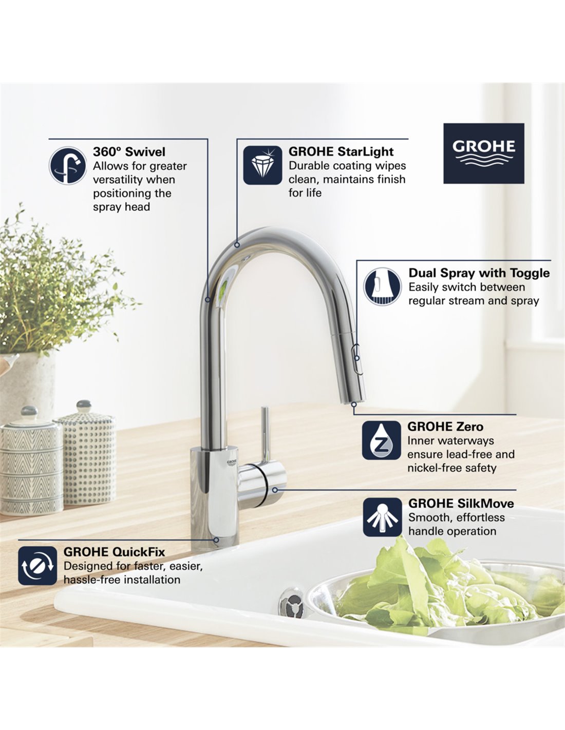 - DURABLE FINISHES: GROHE StarLight coating maintains luster on brushed and polished finishes