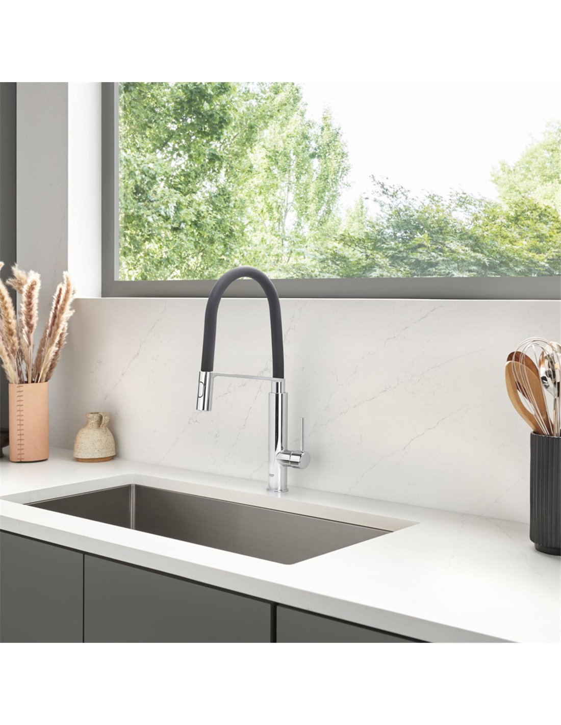 - FLEXIBLE REACH: Hose spout flexes to reach every corner of the sink