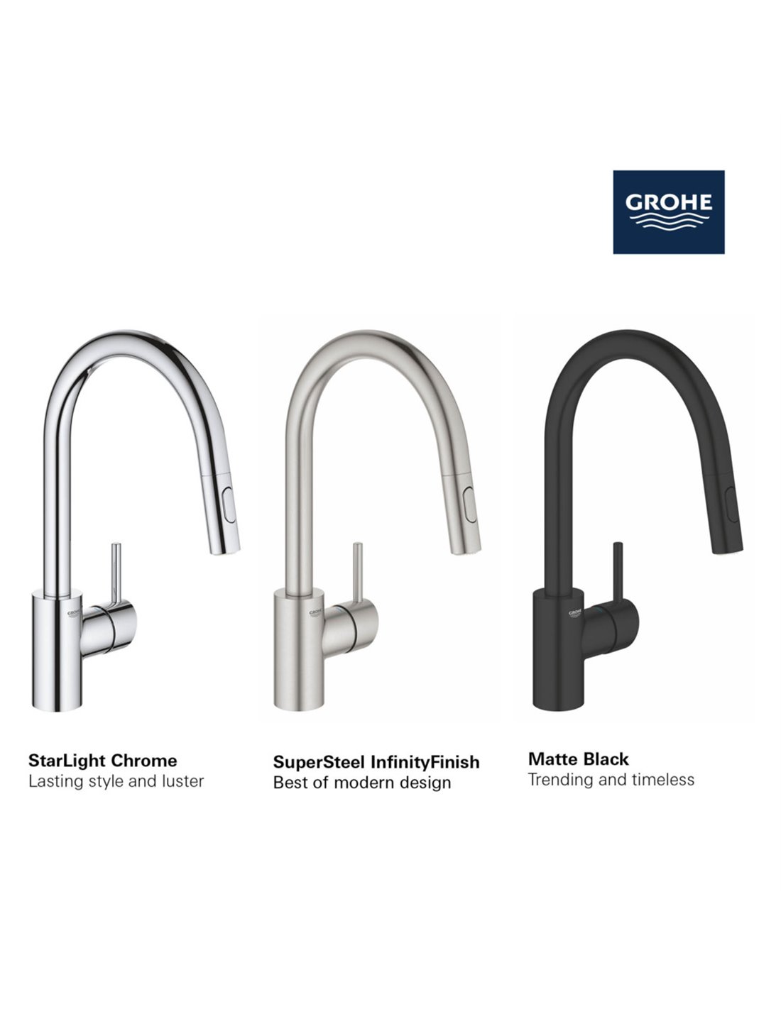 - DURABLE FINISHES: GROHE StarLight coating maintains luster on brushed and polished finishes