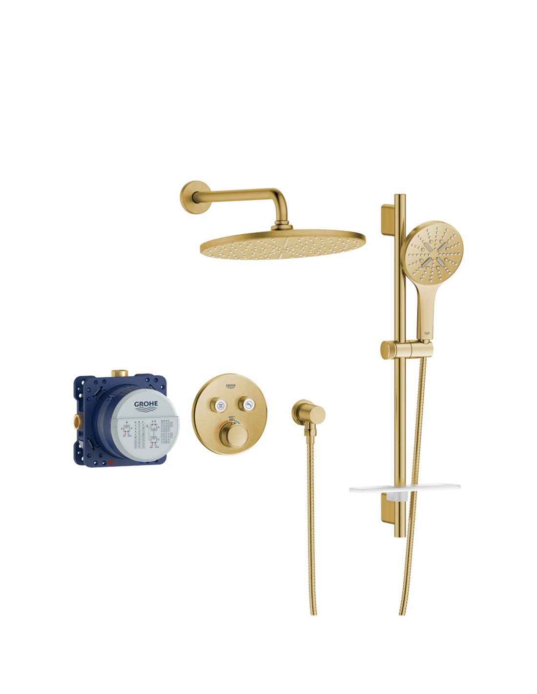 GROHE makes it easy to order and install a complete a shower system with the Rainshower Grohtherm SmartControl Thermostatic Dual Function Shower Kit featuring advanced GROHE technology.