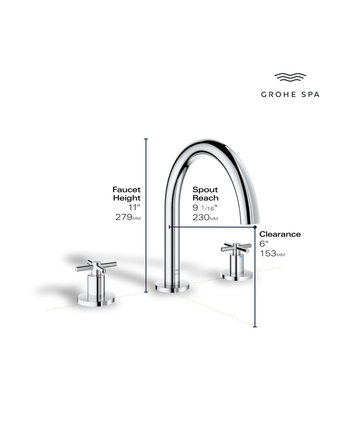 The GROHE SPA Atrio 3-Hole Roman Tub Filler enhances a soothing, at-home spa setting with its clean, minimalist design. Precision crafted, this solid brass tub filler is engineered to deliver an exceptional experience, ensuring superior functionality and visual beauty in today’s most luxurious bathrooms.