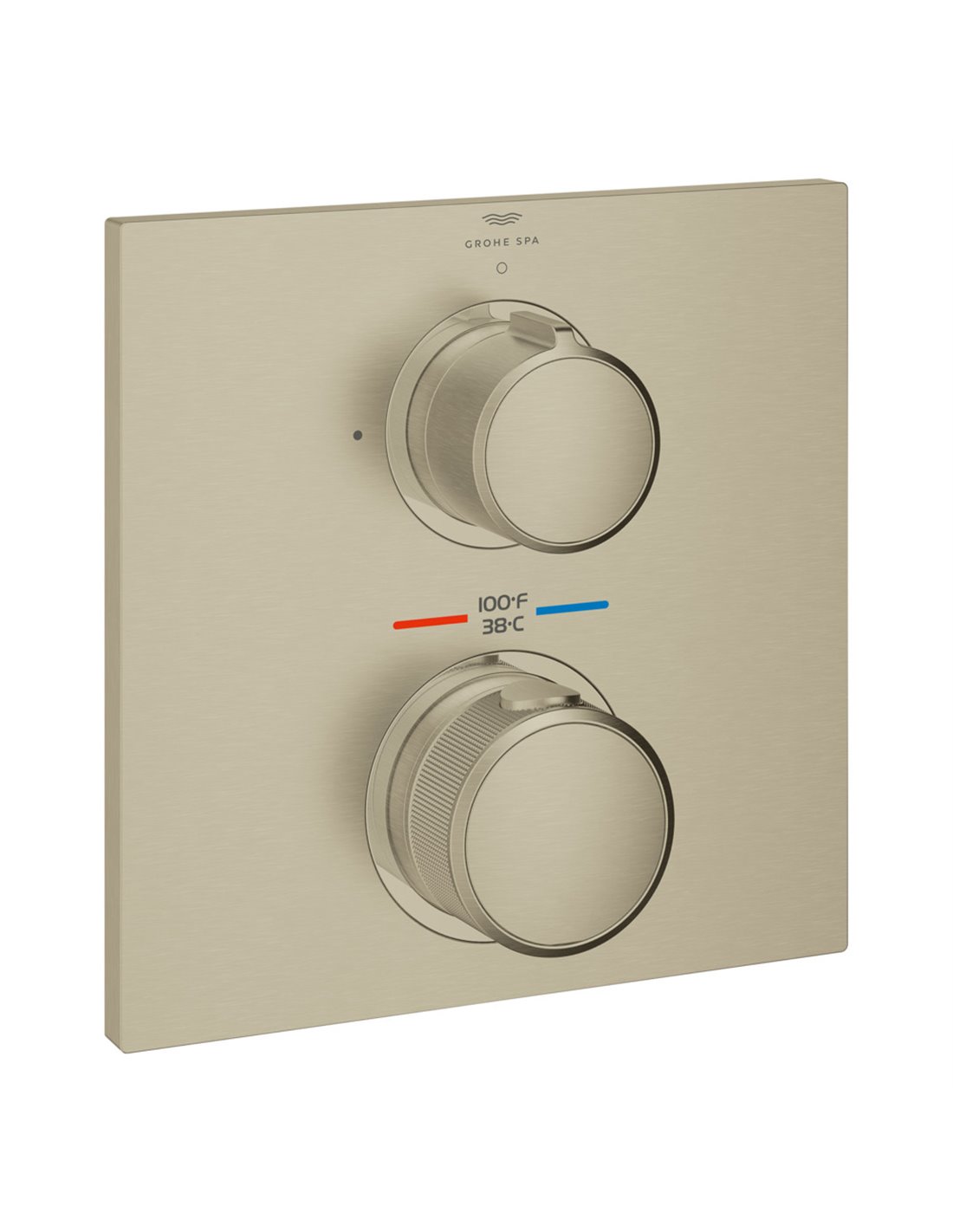 - GROHE SafeStop limits water temperature to 100°F/38°C to prevent scalding