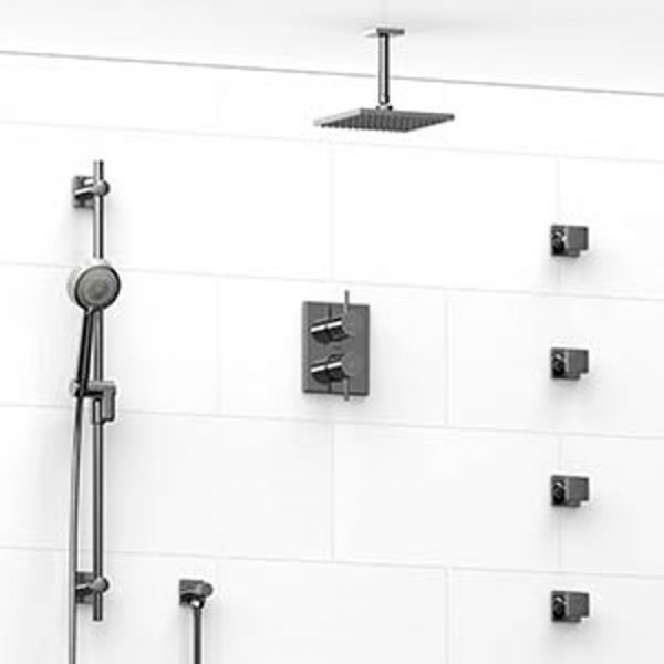 Riobel Pallace KIT483PATQ Type TP thermostaticpressure balance 0.75 double coaxial system with hand shower rail 4 body jets and