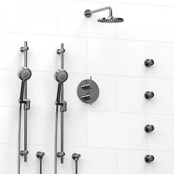 Riobel Pallace KIT783PATM Type TP thermostaticpressure balance 0.75 double coaxial system with 2 hand shower rails 4 body jets a