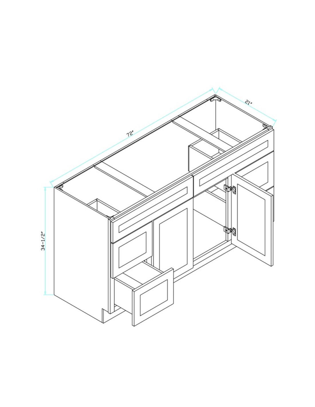 TC 72"(W)x34-1/2"(H)x21"(D),2 Doors,4 Drawers (2 Drawers on each side)