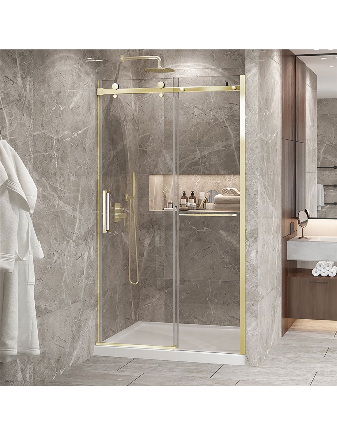 Zitta Bellini 2.0 Bellini 48 brushed gold clear alcove shower door