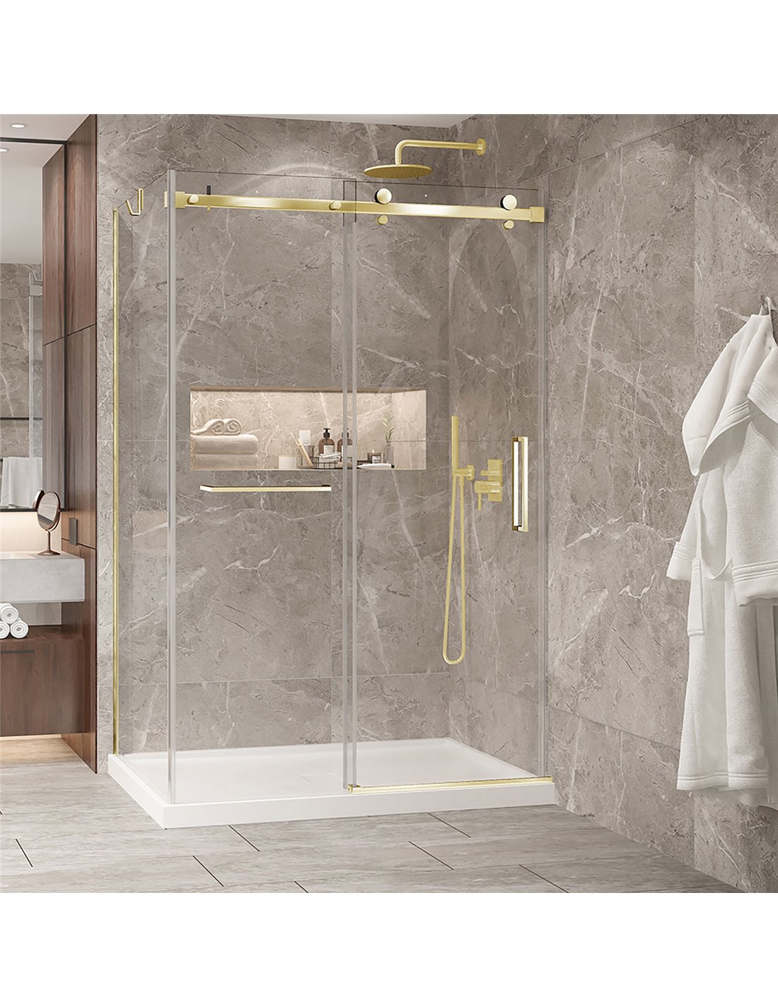Zitta Bellini 2.0 Bellini 54 brushed gold clear alcove wall closing shower door