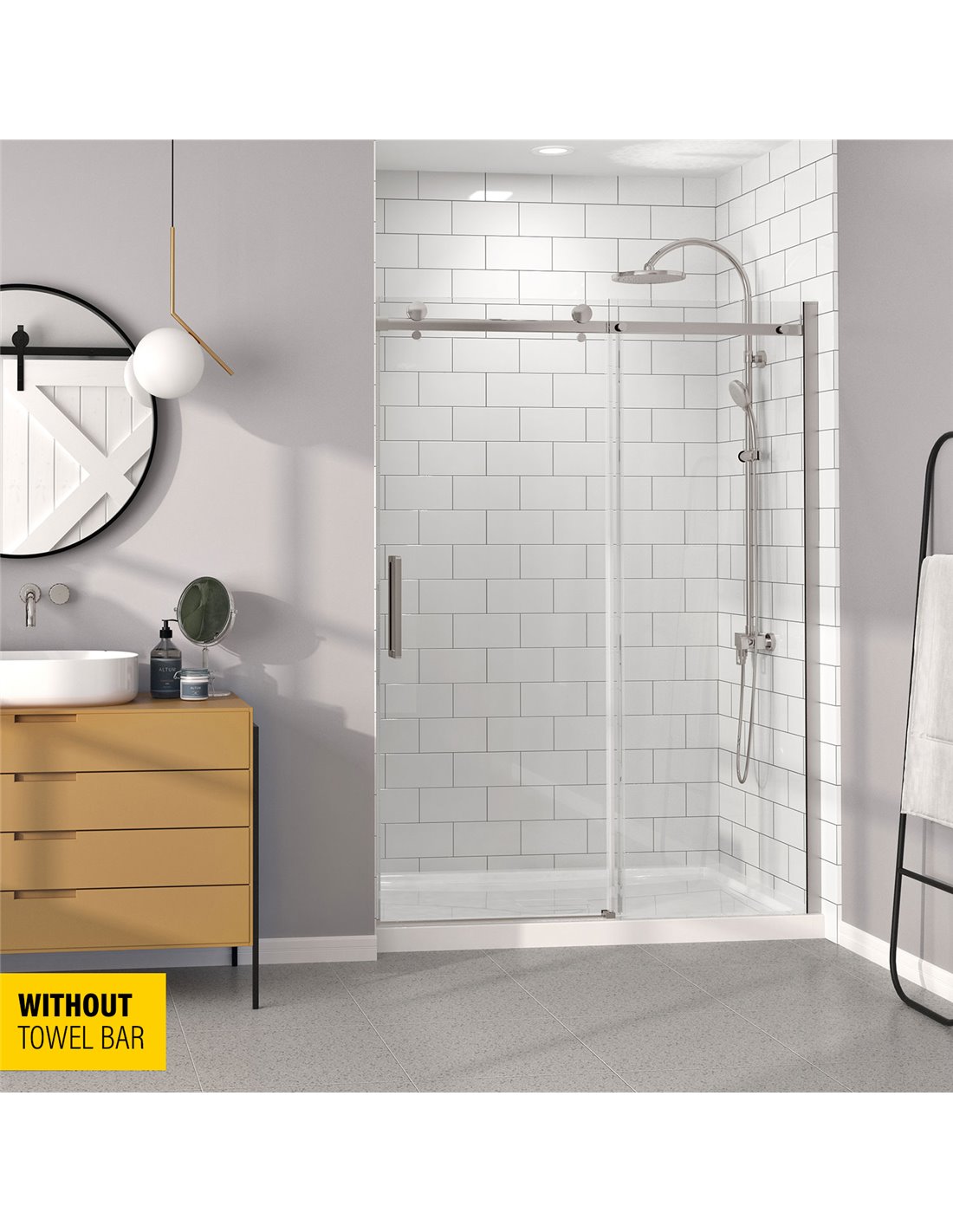 Zitta Bellini 60 Brushed Nickel clear alcove shower door - WITHOUT TOWEL BAR